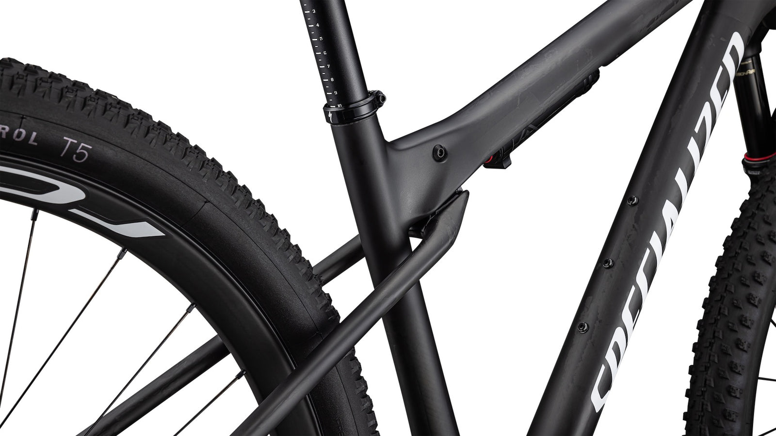 FRAME OF REFERENCE: To deliver maximum speed through ruthlessly efficient power transfer and precision handling, our engineering team set and achieved new standards in torsional rigidity and BB stiffness. This feat required an integrated development approach that merged a structurally superior double diamond layout with its shock cradled inside the top-tube, and finished off with the most sophisticated composite layup in Specialized history.