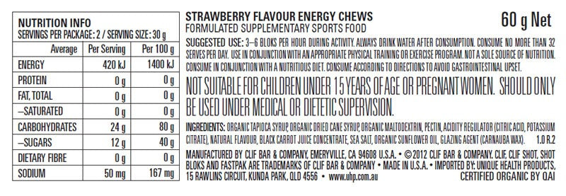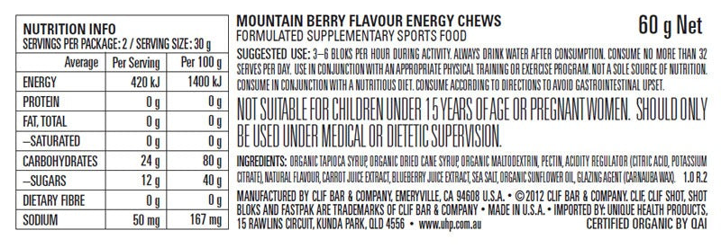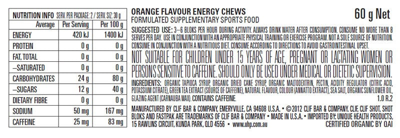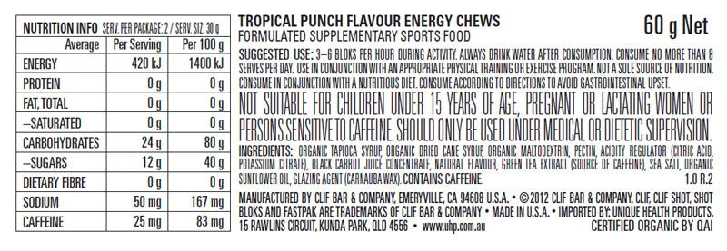 No stems or pips, just carbs and CLIF® BLOKS® indulgent black cherry flavour. These simple, easy-to-chew bites of carbohydrate for your workout or activity. Contains 50mg caffeine per serving. Not recommended for children or pregnant women.
