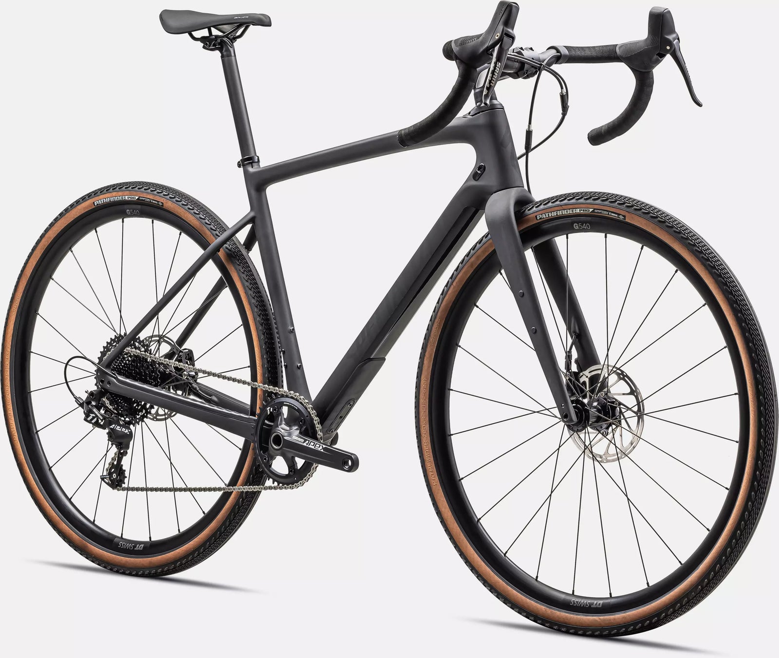 Starting with premium E5 alloy frame and a full carbon FACT fork, we gave the Diverge Comp E5 our Future Shock 1.5 for a fast, confident and comfortable ride on road, in the dirt, and over thick gravel. SRAM’s all new 12-speed Apex group shifts gears smoothly on any terrain and Axis Elite alloy wheels with Pathfinder Pro 42mm tires add even more capability and versatility.