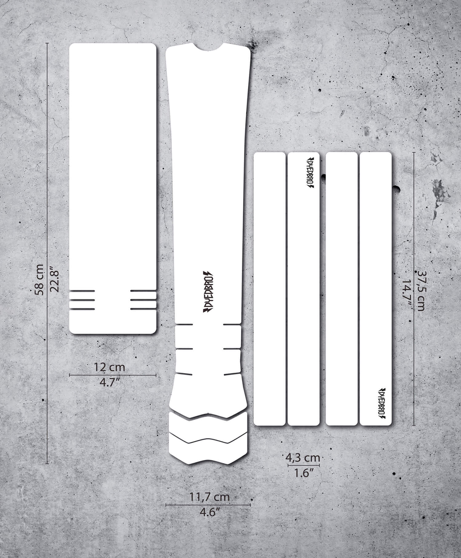Keep your bike scratch free with this frame protector kit. Clear frame protector with DYEDBRO logo. Choose colour of logo from Black or White.