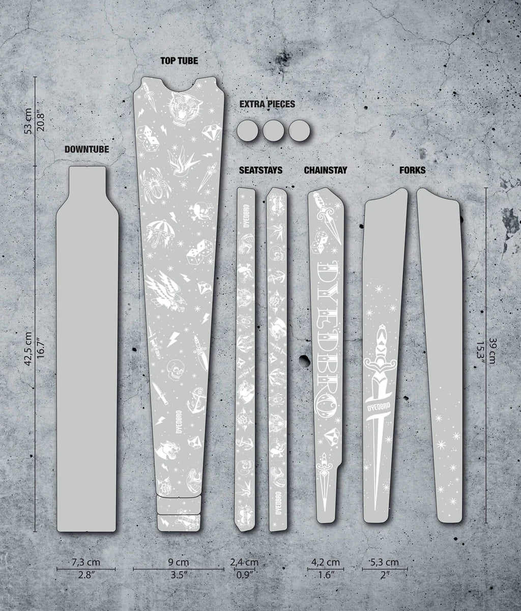 • x1Down tube protector - Gloss kits come with Gloss Down tube section, Matt kits come with Matt Down tube section.