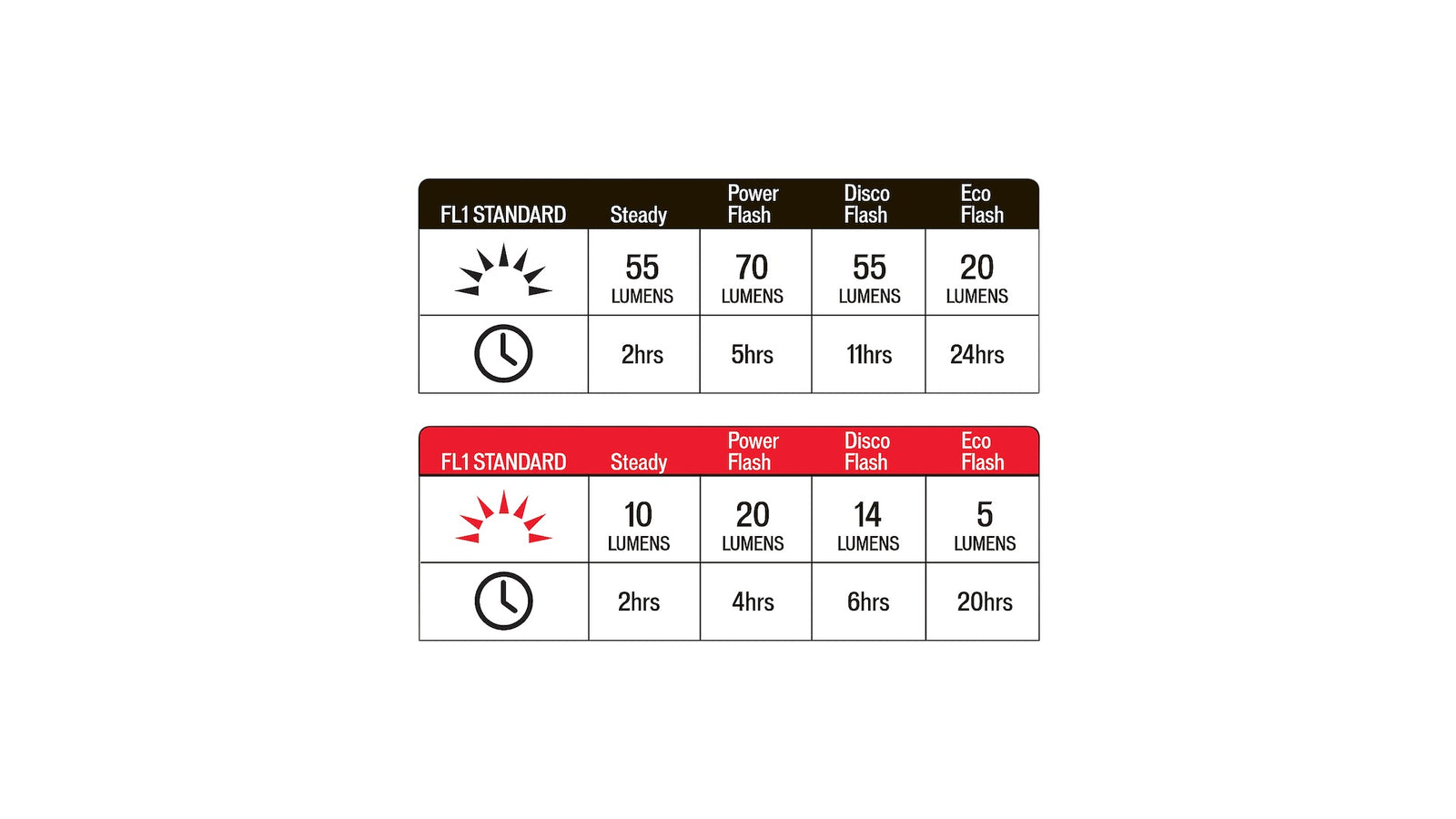 Red Eco Flash mode: 5 lumens for 20:00 hours