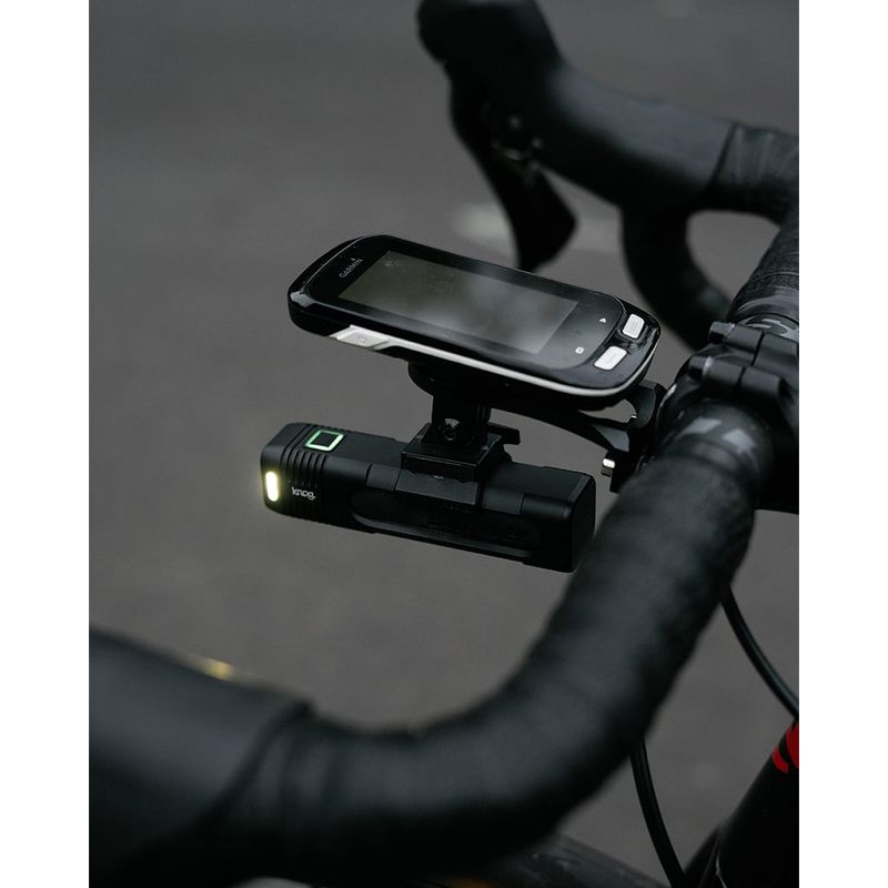 Blinder 900 comes with two seperate mounts. A tough and flexible rubber handlebar mount that fits diameters from 22.2mm to 35mm, and a Go-Pro compatible mount that can position the light below your computer.