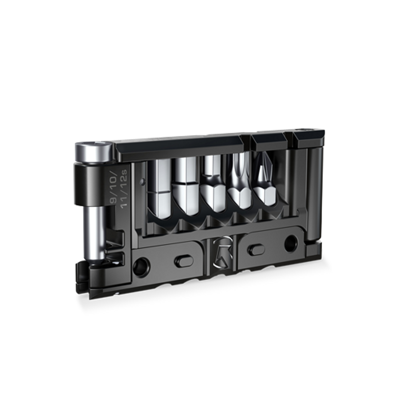 Upgrade and outperform your abilities to deal with mid-ride mechanicals with the PRO Mini Tool Performance 17 Function. Thanks to its compact design it has all the Allan, Torx and screwdriver keys you will need, plus a chain tool and handy storage points for a spare chain link. Each bit features a harden steel tip, for precise adjustments and to ensure the longevity of the multitool, which slots into a lever for improved tensioning power. The compact Mini Tool Performance 17 Function is compatible with the PRO Smart Bottle Cage, which allows you to fit it into the cage’s housing bracket and forget about it until you need it.