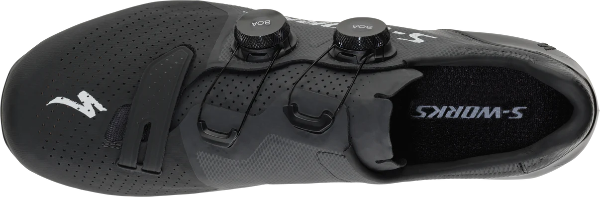 What makes the perfect cycling shoe? Is it exceptional power transfer? Superior Comfort? Undeniable style? The simple answer is "yes" to all of the above. With the S-Works 7 Road, you get shoes with no compromises. We took a no-holds-barred approach to transferring every bit of your power to the pedals. The lighter and stiffer Powerline™ carbon sole is new and brought to you by the same team that developed Rider-First Engineering. Why's this special? Because it led to our lightest and stiffest carbon outsole to date. A completely refined Padlock™ Heel, meanwhile, packs in more comfort with the same exceptional heel hold that you found in the previous iteration. And finally, the space-grade Dyneema™ material used in the upper doesn’t stretch when pulled on, making sure that your foot stays where it’s supposed to. With these all features combined, you can be sure that we’ve kept in line with the motto “every watt is sacred.” In the comfort arena, we kept all of the Body Geometry features you know and love, like the Longitudinal Arch, Varus Wedge, and Metatarsal Button. Each one of these features have been ergonomically designed and scientifically tested to not only boost power, but also to increase efficiency and reduce the risk of injury. We also took luxury into account by designing the S-Works 7 to have form that complements its function, so you'll find seams that are bonded together, rather than sewn, cleaning up the lines and contouring to your foot with slipper-like comfort. The custom CNC’d alloy Boa® dials also add some panache, but they also feature durable spring clutch internals and precise, one-millimeter micro-adjustments that let you perfectly dial in your fit. The S-Works 7 embodies everything we know about footwear, compacted into one shoe with no compromises and no shortcuts—just explosive speed and superior comfort. Body Geometry sole and footbed are ergonomically designed and scientifically tested to boost power, increase efficiency, and reduce the chance of injury by optimizing hip, knee, and foot alignment.