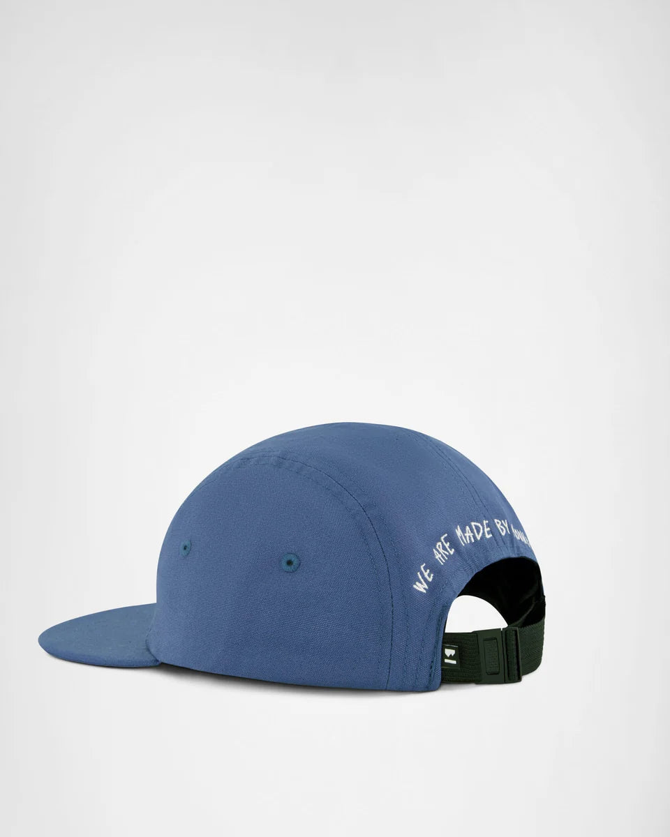 This is a five panel cap with an edge. Embroided Mons 'made by mountains' logo combo'd with a adjustable strap will keep you stylin' whatever your adventure.