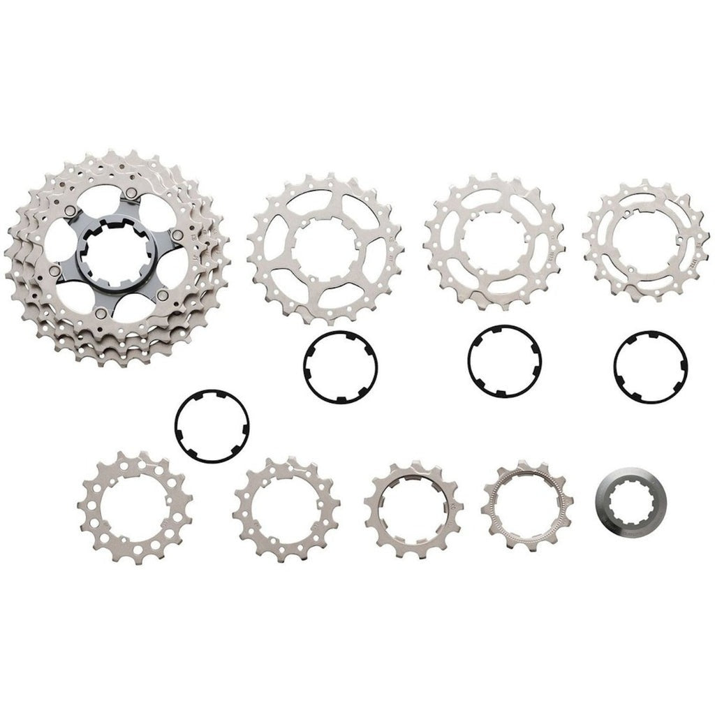 Lightweight 10-speed cassette with rigid alloy sprocket carrier for reduced weight and better shifting performance.
