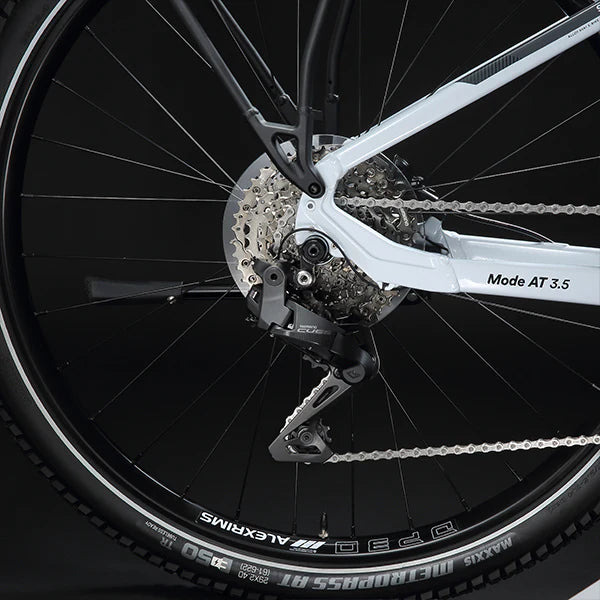 Introducing the Mode AT 3.5 Auto, an all-in-one e-bike perfect for daily use, exploration, and commuting. Its advanced integrated frame and suspension dropper seatpost ensure easy mounting and dismounting. With electronic automatic gear shifting ensuring you are always in the correct gear, while enjoying trouble-free drivetrain longevity and performance. Assisting you up to 45 km/hr, it enhances your riding experience. Unmatched in its class, this sporty e-bike is ideal for outdoor adventures, staying active, and commuting. Simply hop on and ride – say goodbye to manual gear shifting.