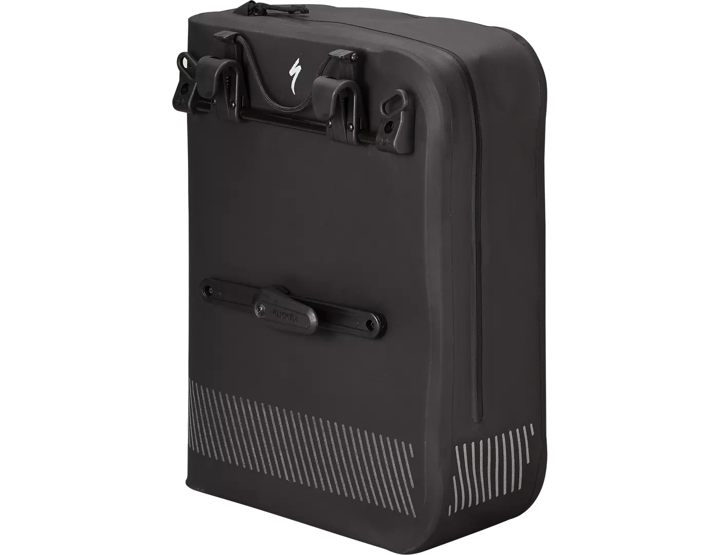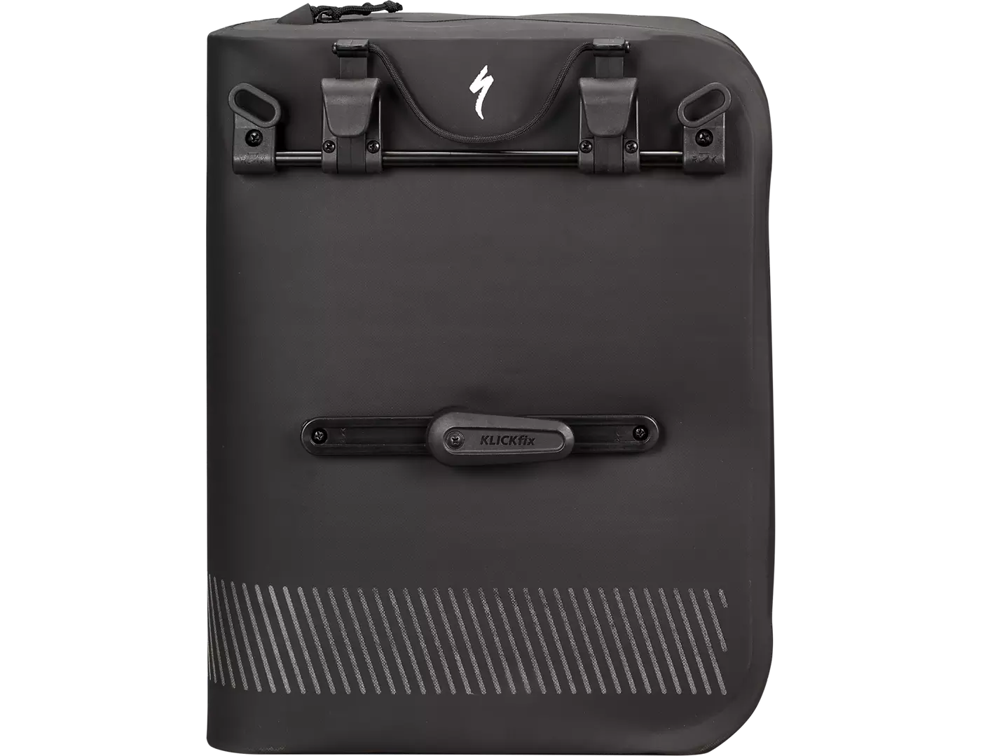 Klickfix mounting system lets you load the bags on and off your bike quickly for easy transitions, freeing up the top of the rack for additional carrying.