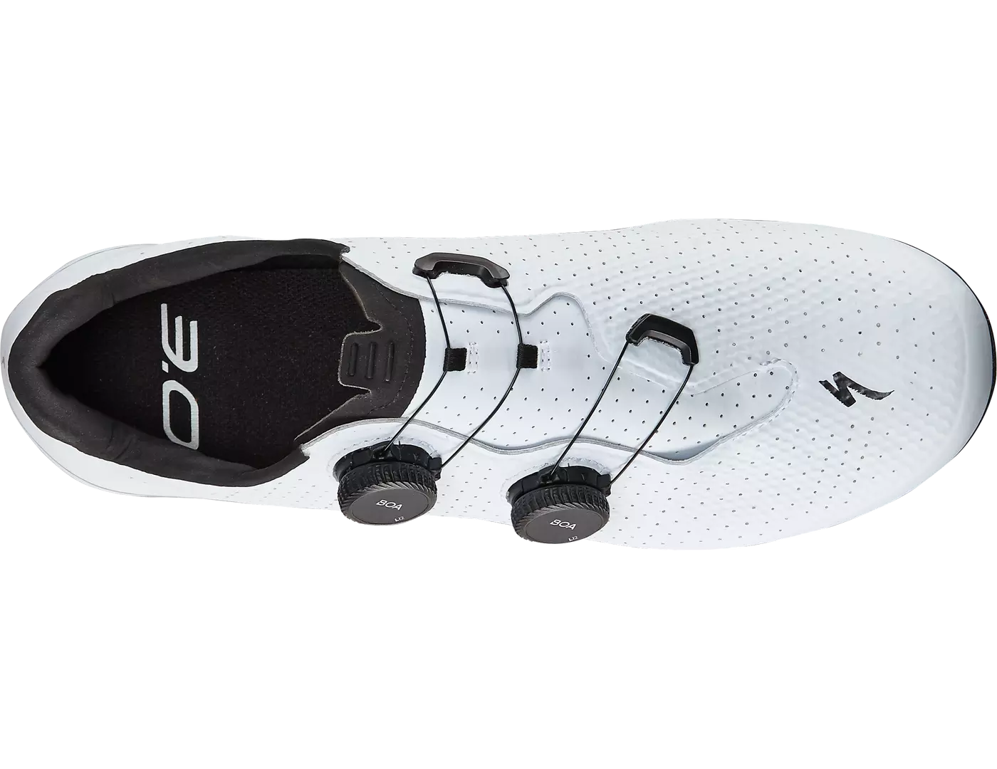 Carbon Plate: The Torch 3.0 features a lightweight, unidirectional carbon plate that enables balanced stiffness throughout the shoe, all while using less material, thus saving weight and ensuring efficient power transfer, mirroring its S-Works counterpart. Additionally, large rubber grips on the outsole of the toe and heel provide a stable, grippy platform for a seamless transition when pushing off the pavement to clip in or coming to a stop at a traffic light.