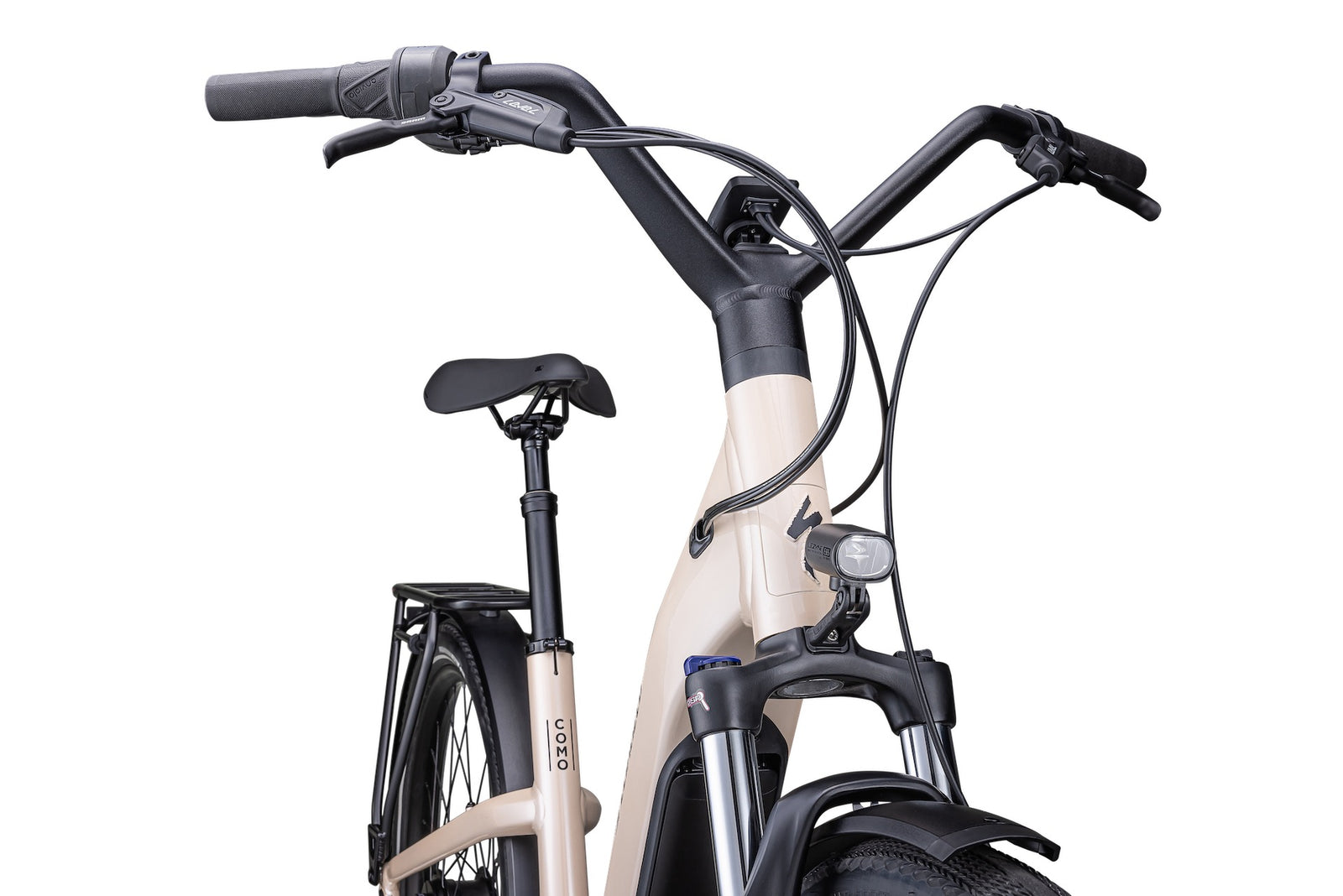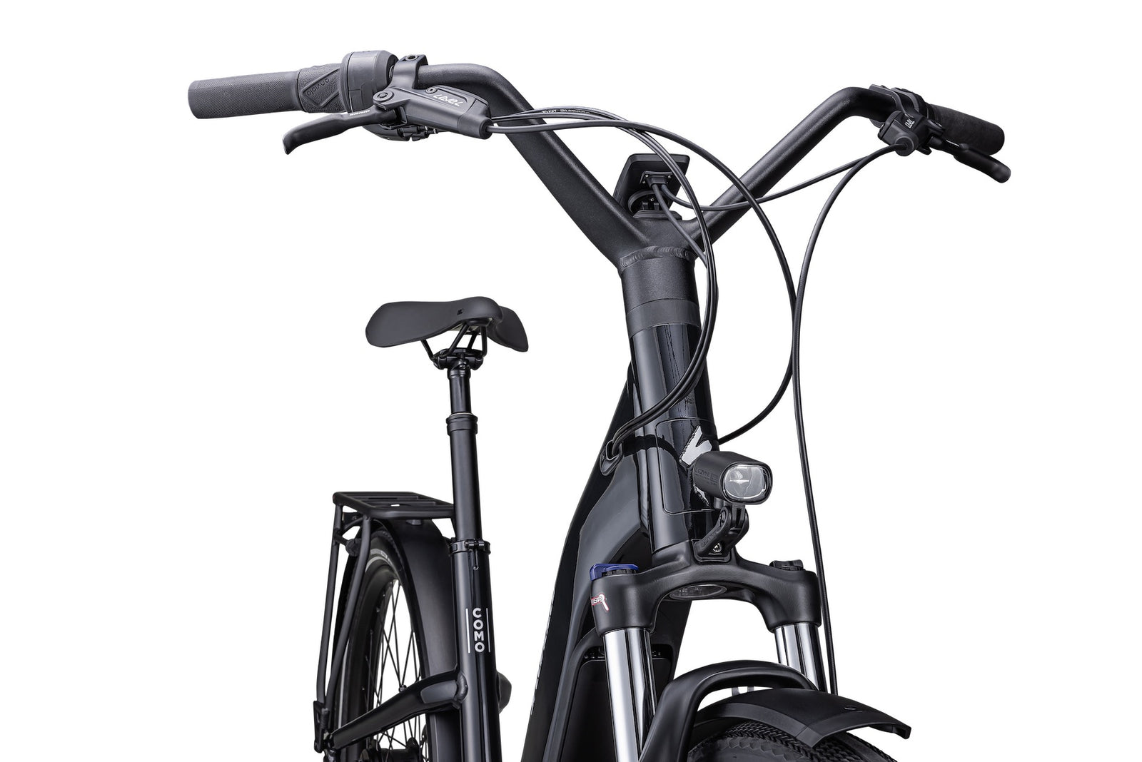 The Como’s low step-through anyone can easily get on and ride. A more upright position reduces stress on a rider’s hands and upper body, allowing riders to comfortably set their sights on the road ahead.