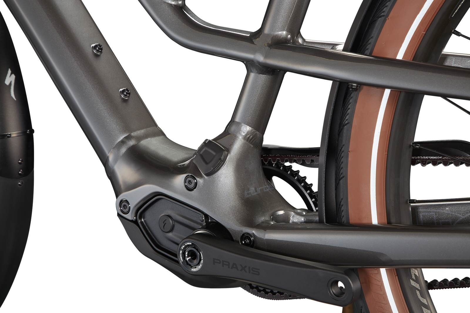 Fully integrated Specialized 320Wh downtube battery w/optional Range Extender compatibility for up to 93 miles of range.