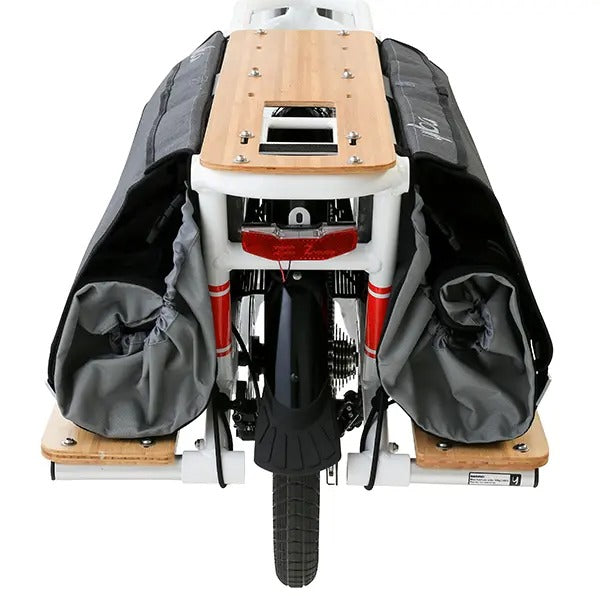 Innovative and practical, the 2-Go Bag system allows you to attach this pair directly onto the frame. You will always have colossal cargo carrying capacity at your heels ! Thanks to the waterproof outer layer, your passengers feet will never get wet, as the bags can also serve as a protective covering.
